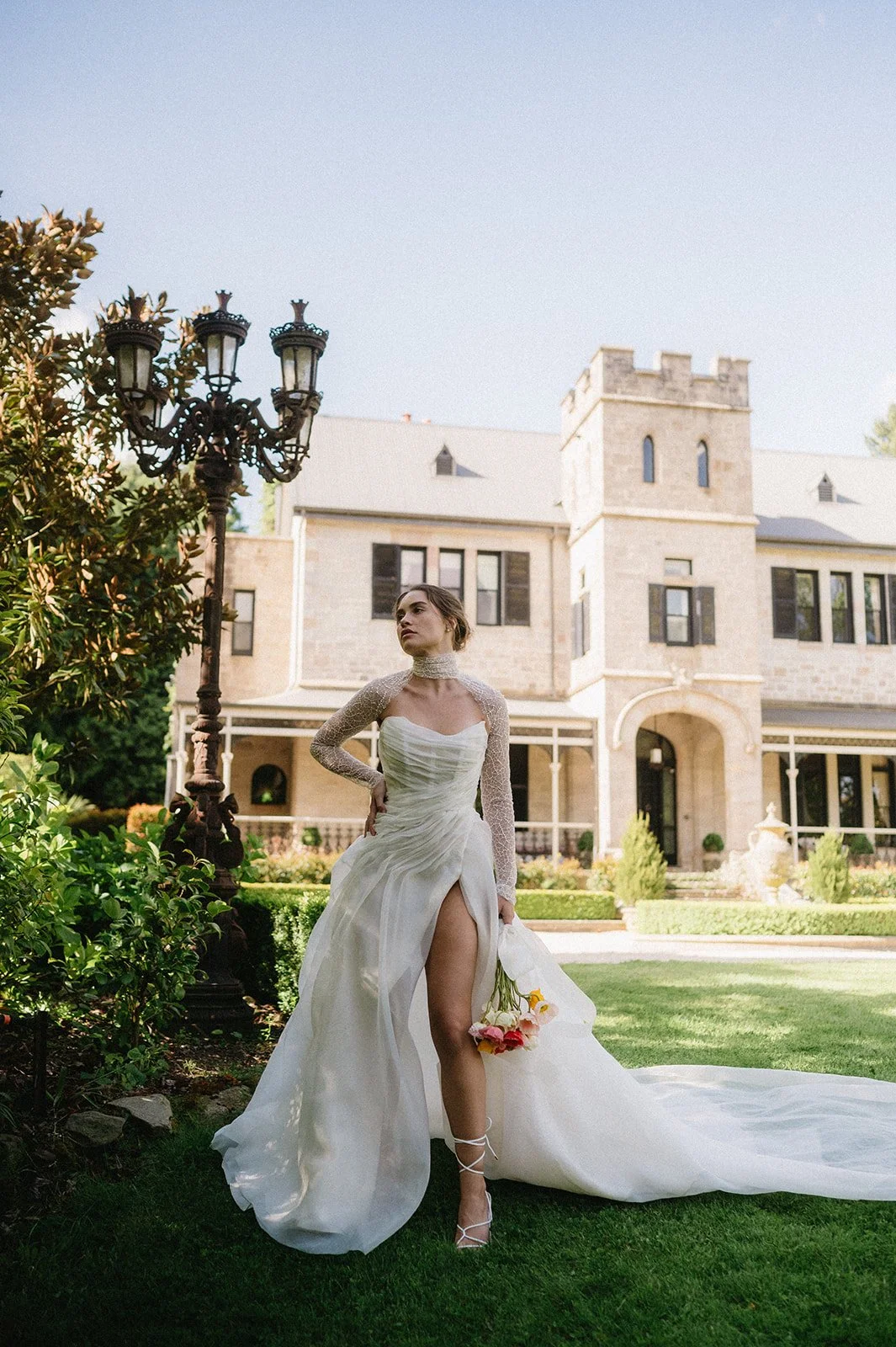 The Val Collection is a heartfelt tribute to Greta’s beloved grandmother, Val, celebrating 90 years of timeless grace, wisdom, and inspiration. Captured in the enchanting gardens of Eurilla Estate, this collection blends refined minimalism with understated luxury, offering a contemporary take on classic bridal elegance.